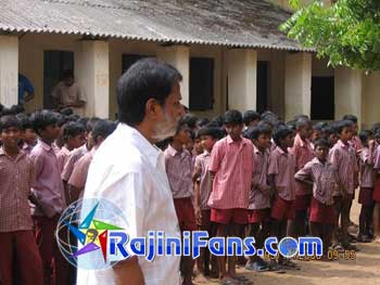 'After the prayers Sathi made a very valid point to the children: "Dear Students, all these gifts are not given by Super Star Rajini and they are indeed given by students like you who have done well their studies and are working in places like USA, UK, Japan, Singapore, etc and had contributed some part of their earnings to give you these things. My job ends with reaching out their gratitude to you and there is no trouble for me in doing this. All I want from you is that you should do well in your studies and repose the faith shown in you, you will be provided with all help to do well with your studies and if you want such gifts again you need to continue to do well in your studies.