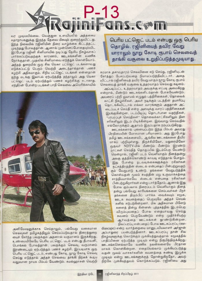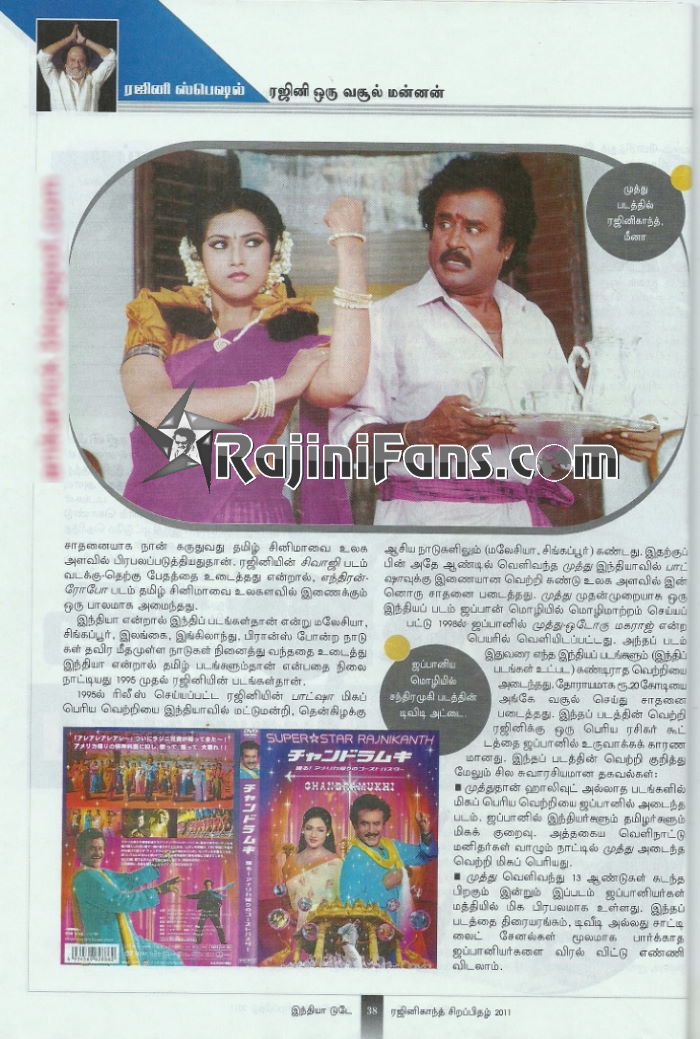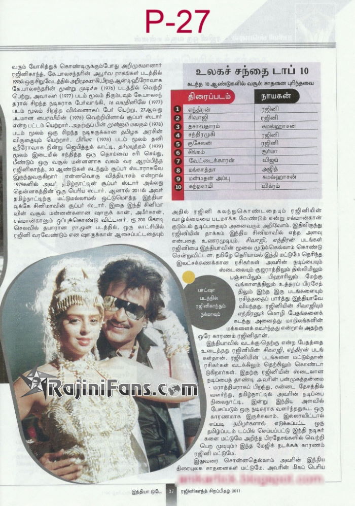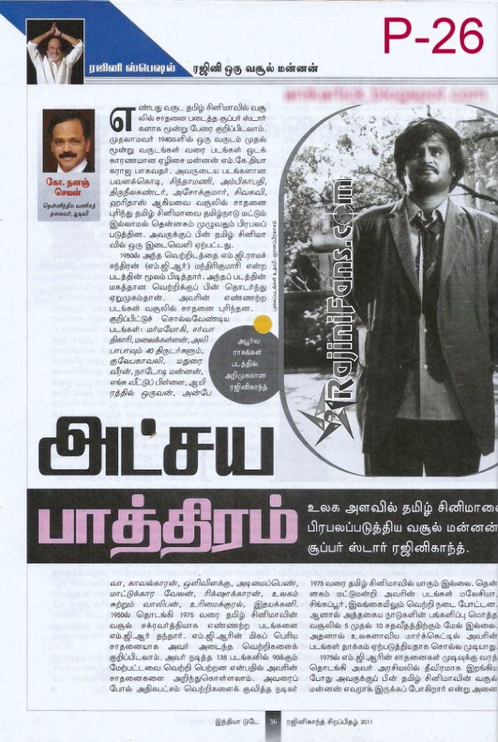 Inida Today came up with exclusive Superstar Rajinikanth birthday special in November 2011. This edition contains 100% related to Thalaivar news and articles. Please browse through all the pages to enjoy the flashback news by India Today.
