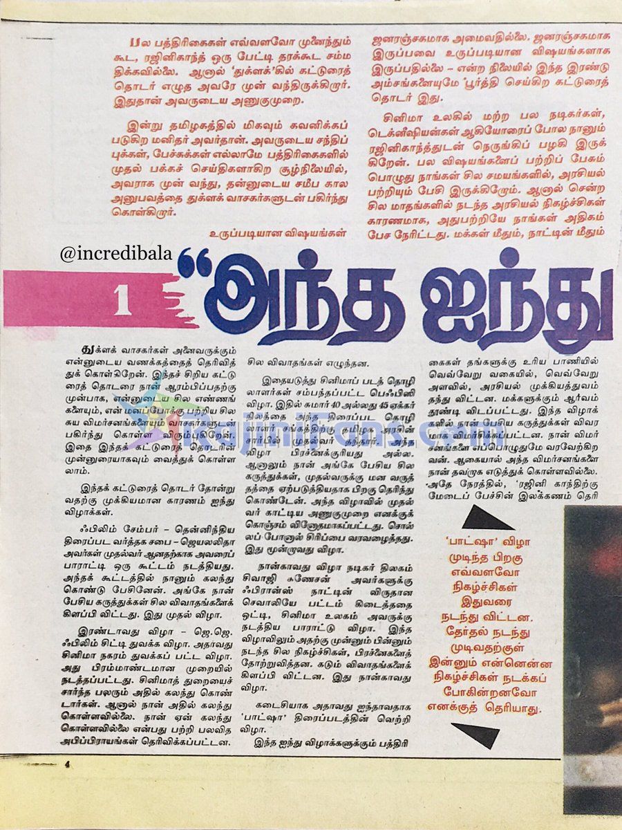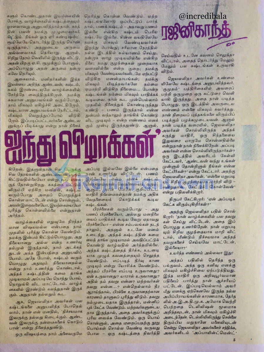அரசியல் பரபரப்பின் உச்சத்தில் இருந்த 1996 தேர்தலுக்கு முன் துக்ளக்கில் சூப்பர்ஸ்டார் எழுதிய 'அந்த ஐந்து விழாக்கள்' தொடர் உங்களுக்காக இதோ :