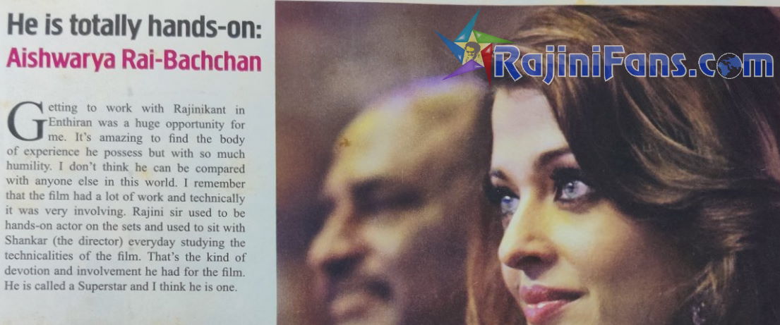 2) ரஜினி பற்றி என்ன சொன்னாலும் போதாது - ஐஸ்வர்யா ராய் பூரிப்பு