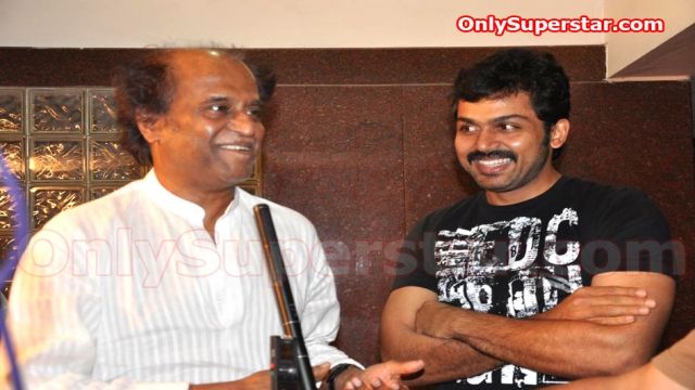படத்தை பார்த்து விட்டு, கார்த்தியின் நடிப்பை வெகுவாக பாராட்டினார் கோடியில் ஒருவன் சூப்பர் ஸ்டார் ரஜினிகாந்த். படத்தின் டைரக்டர் செல்வராகவன் பின்னர் வந்து சேர்ந்துகொண்டார்.