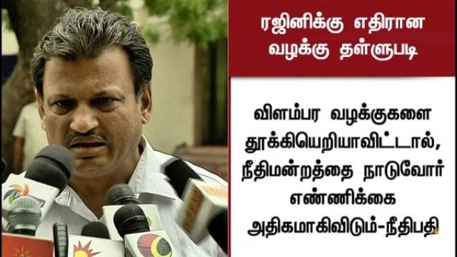 இந்த வழக்கு ஆவணங்கள் அனைத்தையும் படித்து பார்த்ததில், சமுதாயத்தில் பிரபலமானவரை, அதாவது ரஜினிகாந்தை வலையில் சிக்கவைக்கும் விதமாக இந்த வழக்கு தொடரப்பட்டுள்ளது என்பது தெரிகிறது. மேலும், மலிவான விளம்பரத்துக்காக பிரபலமானவர் மீது சட்டத்தை தவறாக பயன்படுத்தி இந்த வழக்கு தொடரப்பட்டுள்ளது.