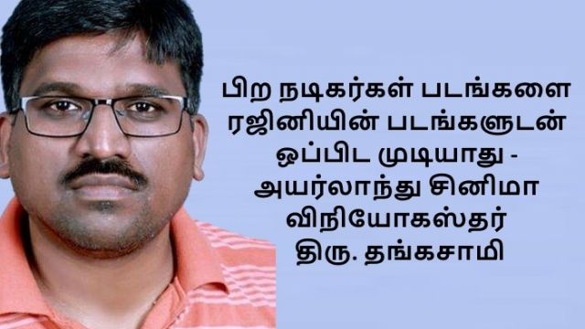 தங்கசாமி: பிற நடிகர்கள் படங்களை ரஜினியின் படங்களுடன் ஒப்பிட முடியாது. UKல் இதுவரை அதிக வசூலைப் பெற்ற படம் எந்திரன்.