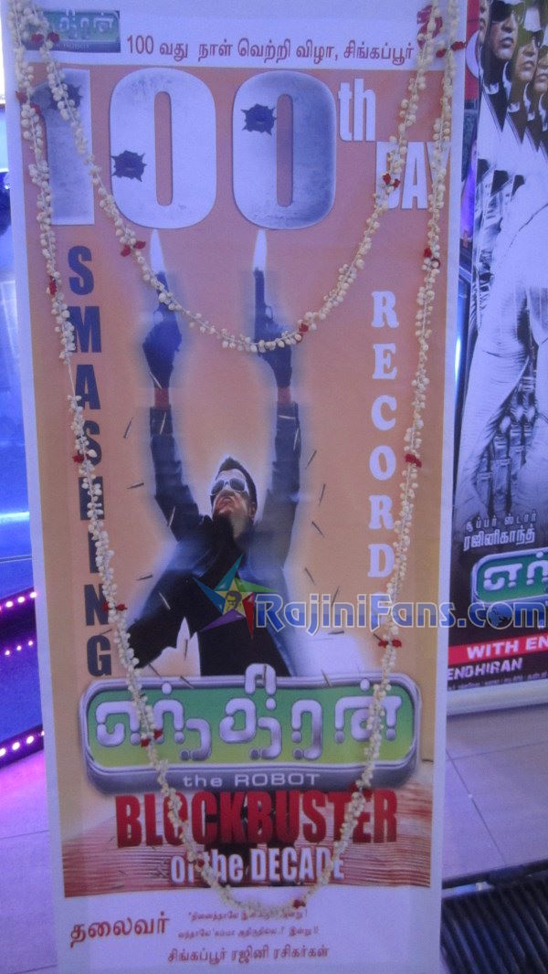 சிங்கப்பூரை பொறுத்தவரை அங்கு நூறு நாள் சாதனையை நிகழ்த்தியது தலைவரின் படங்களே. சந்திரமுகி. 3 திரையரங்குகளில் ரிலீசாகி ஒரு திரையரங்கில் நூறு நாட்கள் கண்டது. சிவாஜி 8 திரைகளில் ரிலீசாகி ஒரு திரையரங்கில் நூறு நாட்கள் கண்டது. எந்திரன் அதிகபட்சமாக 14 ஸ்க்ரீன்களில் ரிலீசாகியும் கூட நூறு நாட்கள் கண்டது. சிங்கை திரை வரலாற்றில் இது ஒரு மிகப்பெரும் சாதனையாகும். (ஷங்கரின் ஜீன்ஸ் திரைப்படம் ஒரு தியேட்டரில் ரிலீசாகி பின்னர் நூறு நாள் கண்டது.)