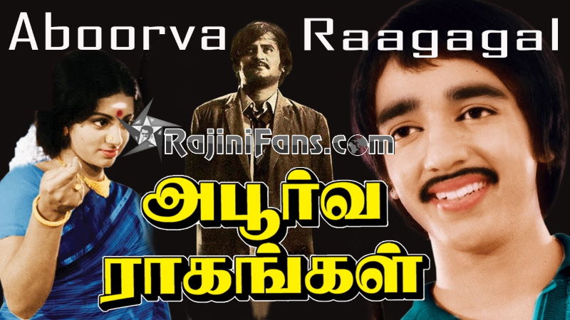 K. BALACHANDER Presents "ABOORVA RAGANGAL". KAMAM, RAJINI, SREE VIDHYA, "MAJOR" SUNDER RAJAN, JAYA SUDHA, NAGESH in a Family based "K.B" Movie. The specialty of this movie is "This movie is SUPER STAR RAJINIKANTH's First Movie in TAMIL". Songs by Kanadhasan. Enjoy my review on "Tamil Classic Movie Collection" Aboorva Ragangal.