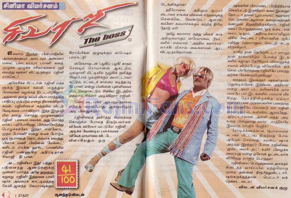 Where do you start? Where do you end? How do you recapture cinematic magic, the captivating power and charisma of one man, who manages to transcend the rational faculties in all of us? How do you re-create this attraction of soul and heart? No matter what, no review is ever going to do justice to Sivaji –The Boss as no writer can summon the ability to bring in words the impossible swathe that Rajnikanth’s appeal cuts across various strata of the society.