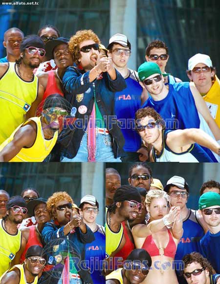 Rajinikanth in the song Oru koodai Sunlight.Everyone thought it was make-up that made Superstar Rajinikanth look like a European in that song, but the secret is about a year of computer graphics.